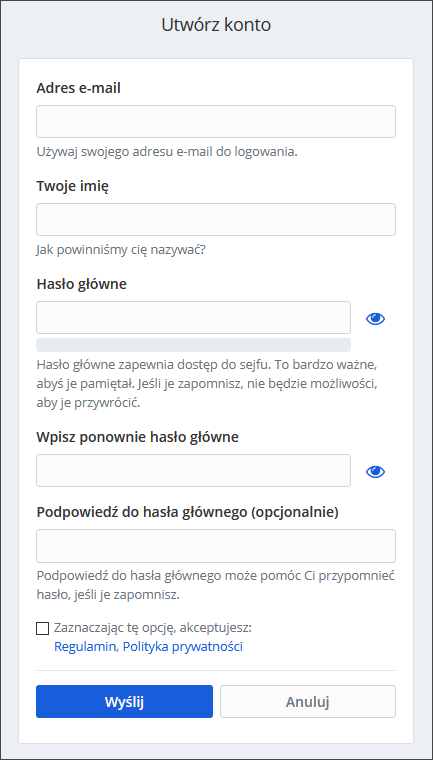 Hasło główne będzie służyło do dostępu do reszty Twoich haseł. Zadbaj by było odpowiednio złożone.