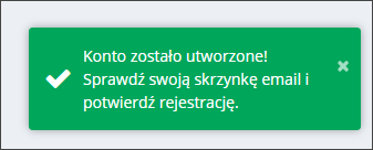 Po pomyślnej rejestracji zobaczysz komunikat: