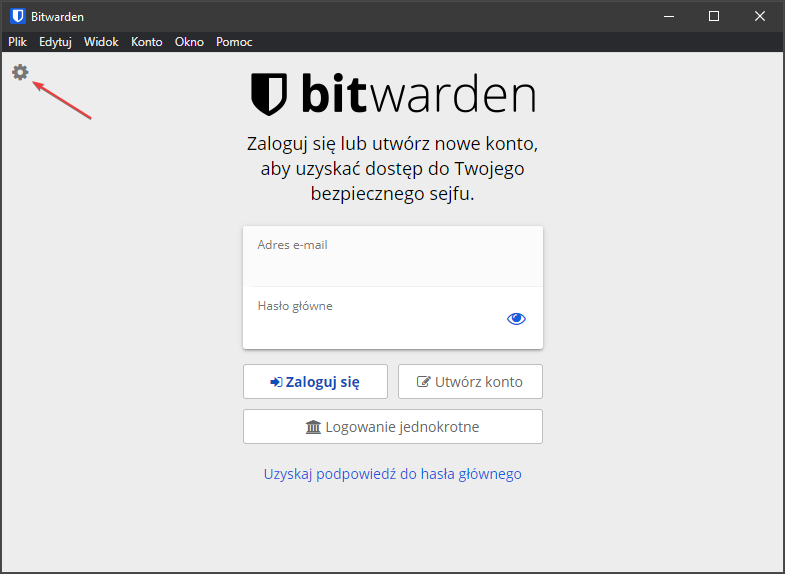 Po instalacji na komputerze, uruchom aplikację i kliknij ikonę koła zębatego w lewym górynm rogu;