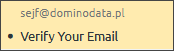 Sprawdź sowją skrzynkę pocztową. Otrzymasz maila od sejf@dominodata.pl o temacie "Verify Your Email"