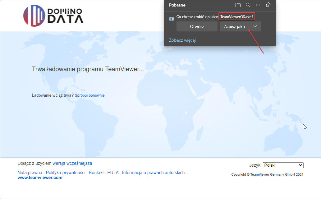 - Wejdź na stronę pomoc.dominodata.pl pobierz moduł pomocy zdalnej